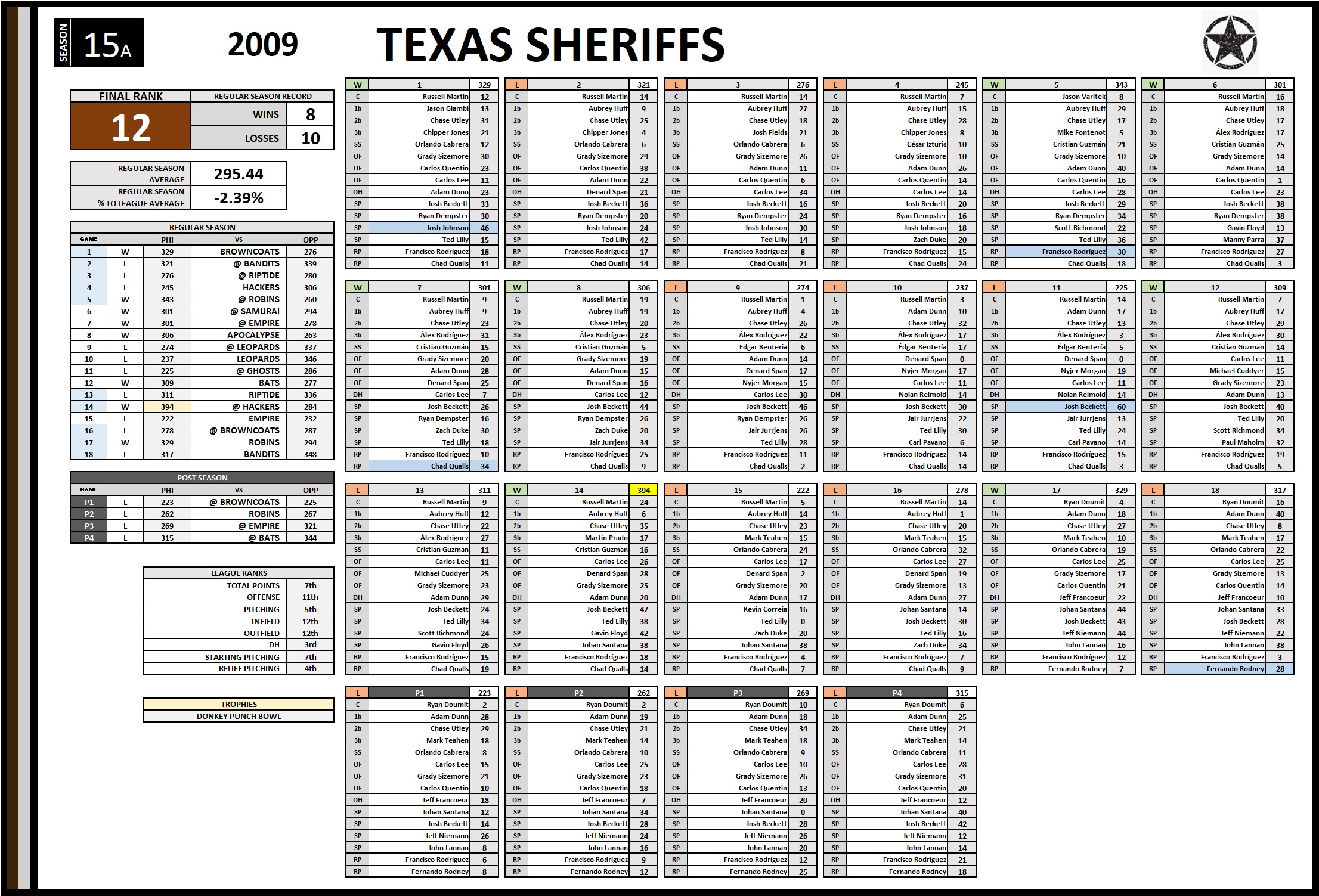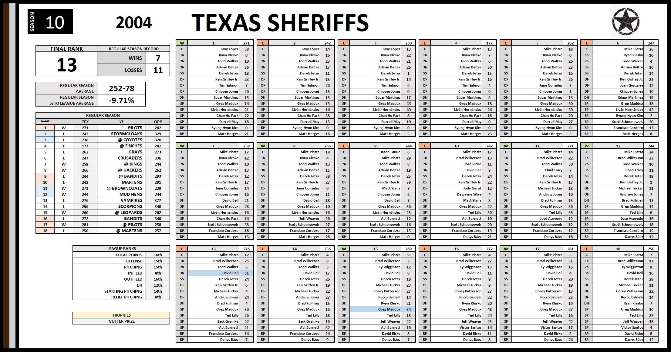 TEX S Team Records